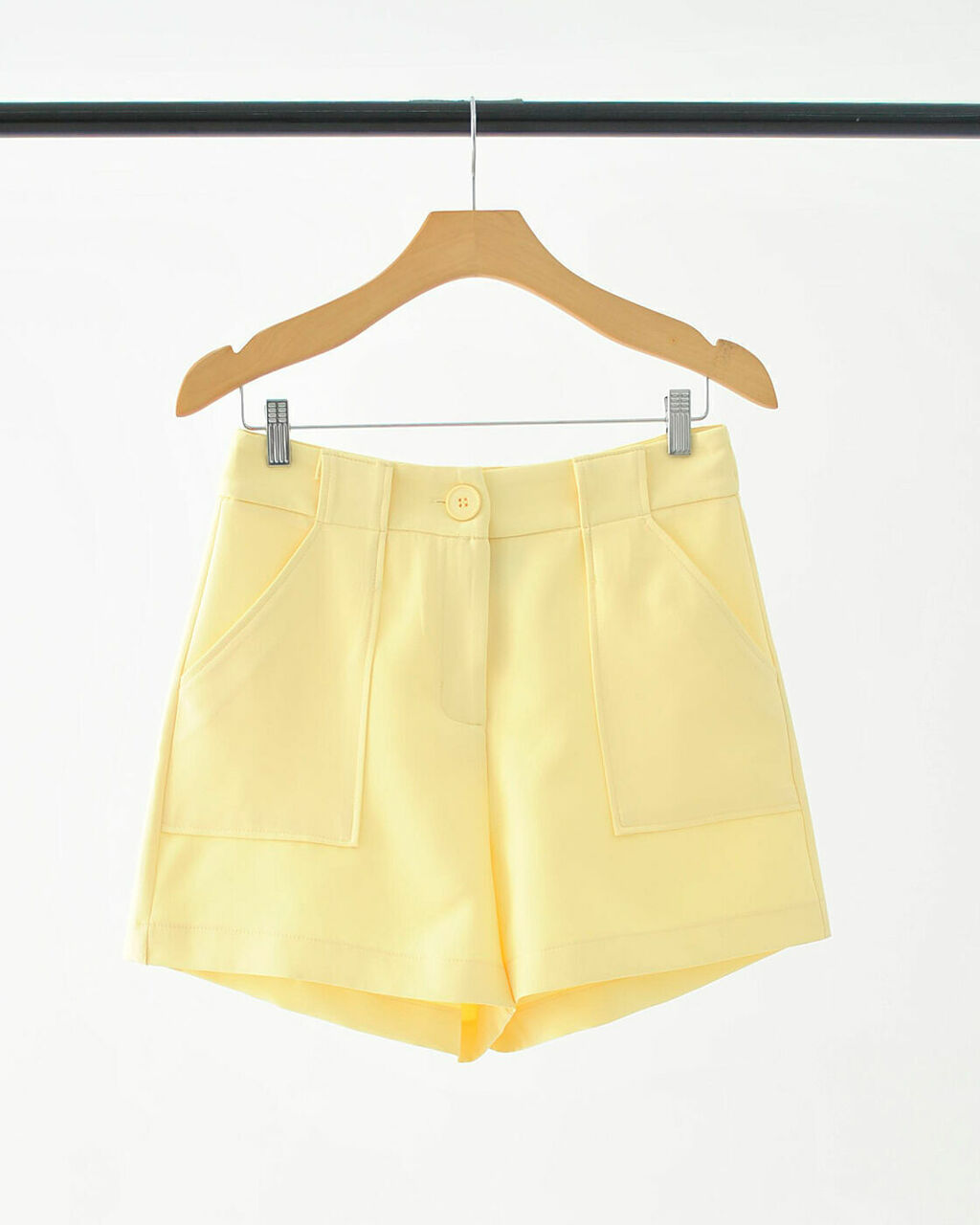 Short de alfaiataria em tecido estruturado. Possui cintura alta e fecho